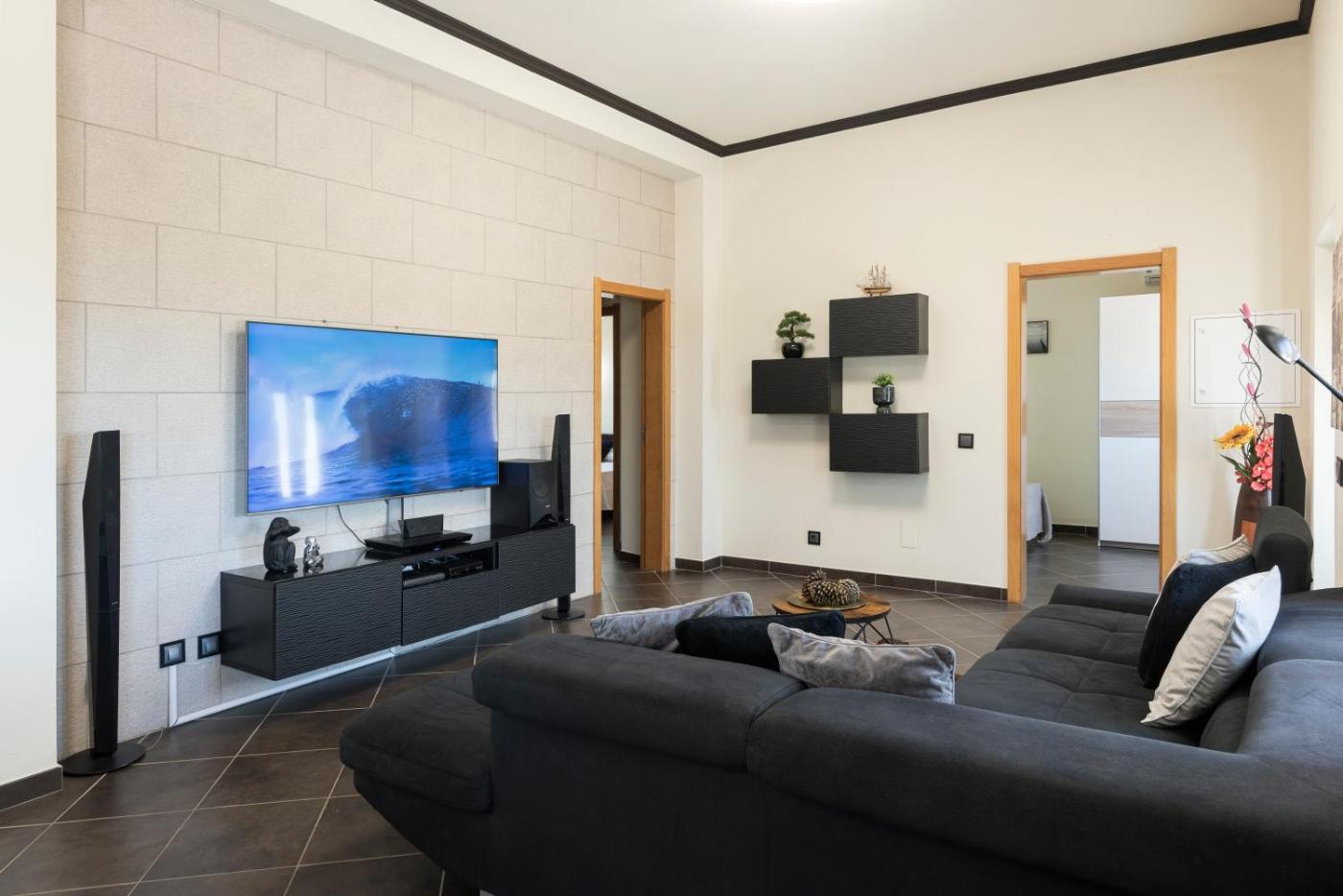 The spacious holiday home has 4 bedrooms, 2 bathrooms, bed linen, towels, a flat-screen TV with streaming services, a dining area, a fully equipped kitchen, and a terrace with sea views. A private entrance leads gueststhe holiday home,they can enjoy some wine or champagne and fruits. There is also a seating area and a fireplace.